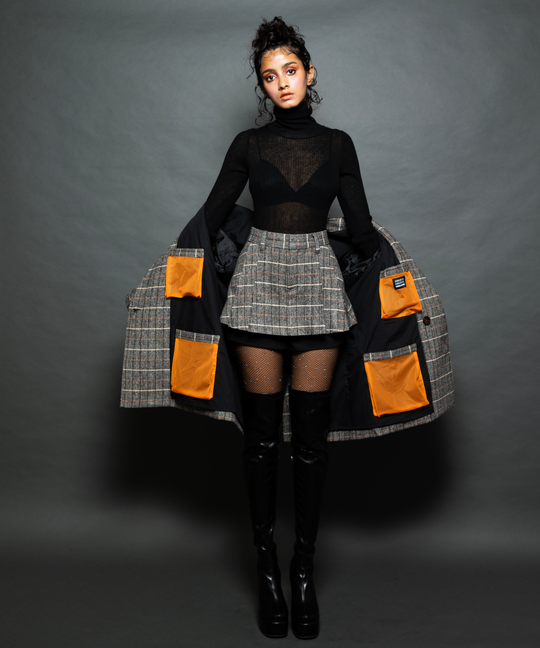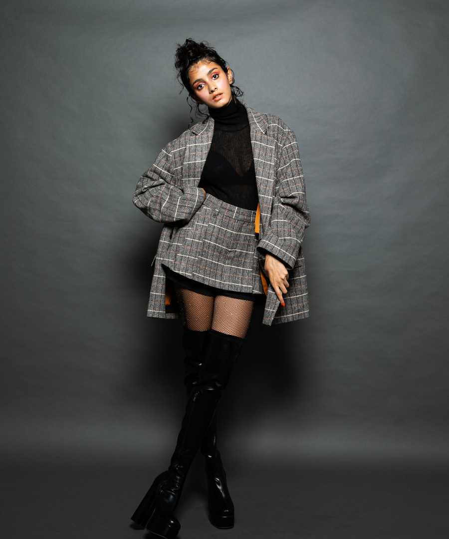 オーバーサイズ×スカートの組み合わせはガーリー過ぎず、強めな着こなしができちゃいます。